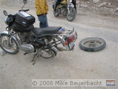 Daar stond ik dan, op 5200 meter hoog in de koude wind en hagel, met een motor waarvan de achteras uit de motor getrild was.