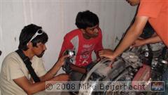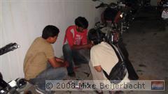 Na het eten hebben we gekeken hoe de monteurs probeerden de verlichting van 1 van de fietsen te repararen. Behoorlijk spartaans maar met de nodig ervaring, en je moet vooral geen haast hebben.